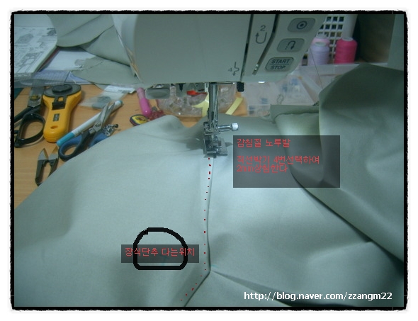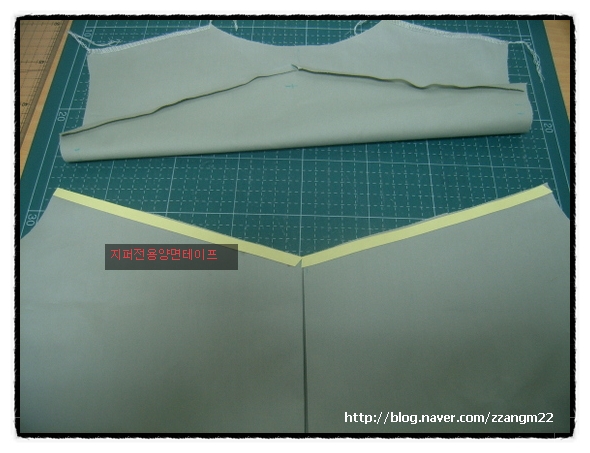 *¿äÅ©ÀÇ ½ÃÁ¢À» ´Ù¸®¹Ì·Î 1cmÁ¢¾î ´Ù·ÁÁÖ°í "ÁöÆÛÀü¿ë¾ç¸éÅ×ÀÌÇÁ"¸¦ ÀÌ¿ëÇÏ¿© µÚÆÇ¿¡ ¿äÅ©¸¦ ¿¬°áÇÑ´Ù.