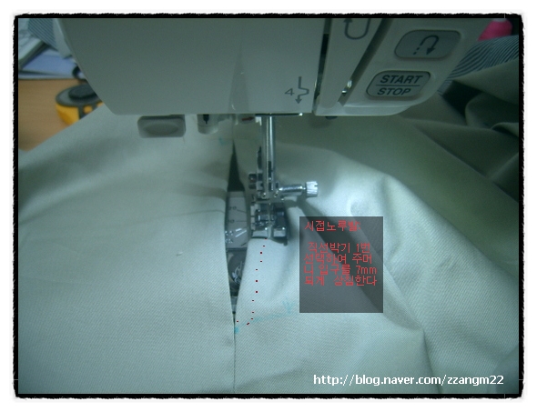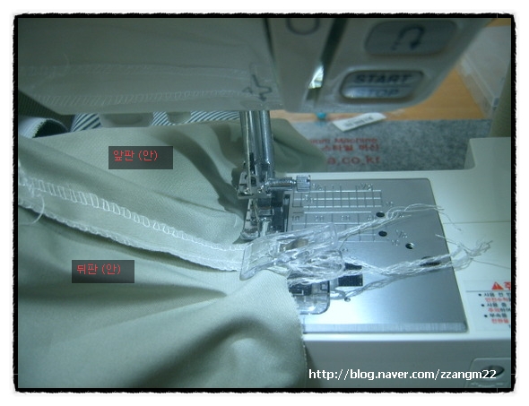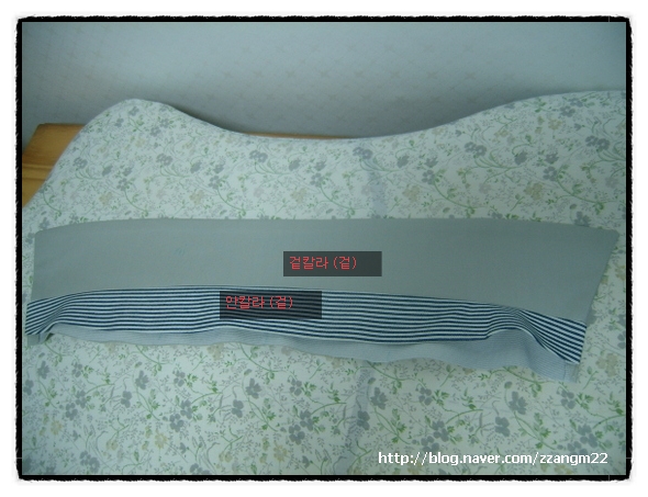 6. ¾ÕµÚÆÇ ¿·¼± ¿¬°áÇϰí ÁÖ¸Ó´Ï ¸¸µé±â: ÁָӴϸ¦ ¾ÕÆÇ°ú µÚÆÇ¿¡ ÁÖ¸Ó´Ï À§Ä¡¿¡ °¢°¢ ¿¬°áÇÑÈÄ ÁÖ¸Ó´Ï °Ñ³¢¸® ¸¶ÁÖ´ë°í ¸·°í ÃÖÁ¾ ¿À¹ö·ÏÇÏ¿© ¸¶¹«¸®ÇÑ´Ù.
